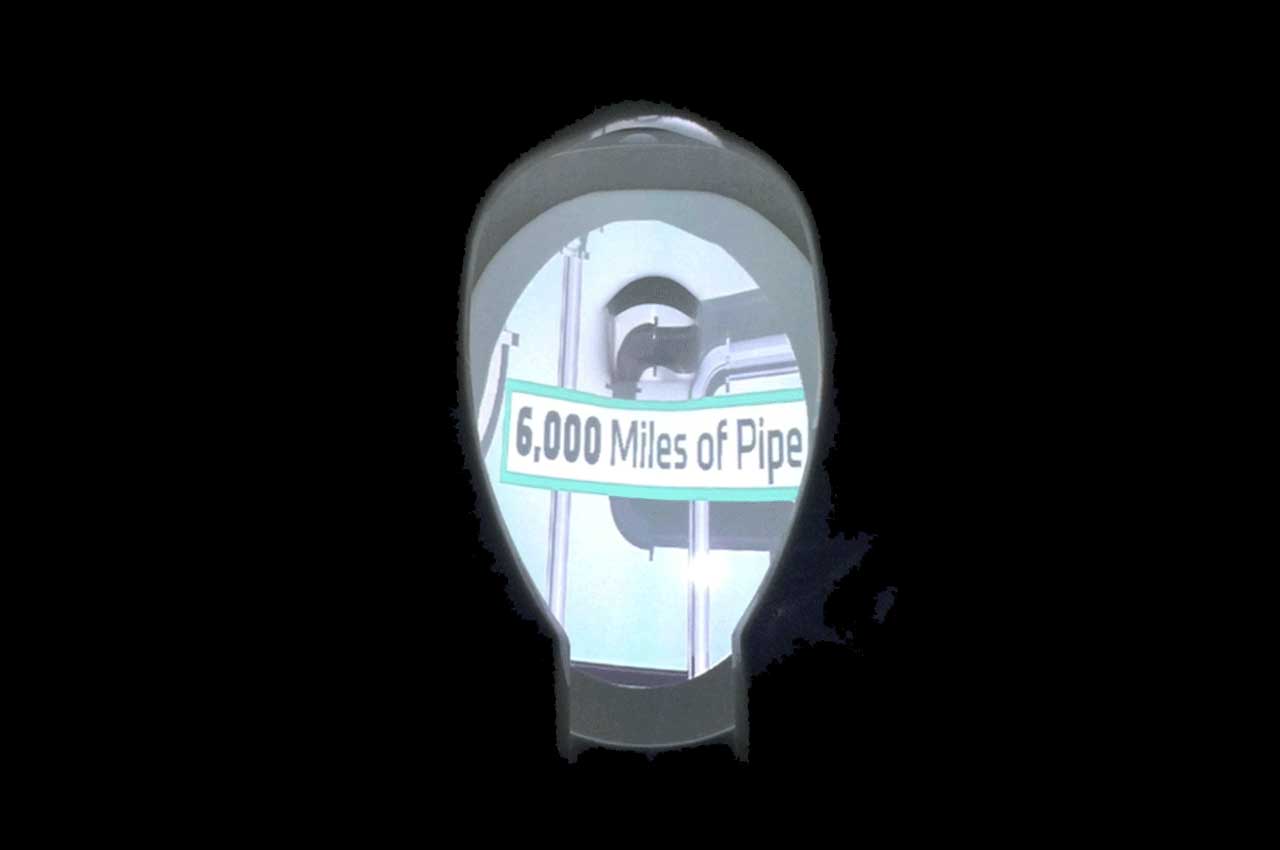 The post-flush journey of NYC sewage projection-mapped into a toilet. This video shows the entire sequence, starting with the sound of a flush.